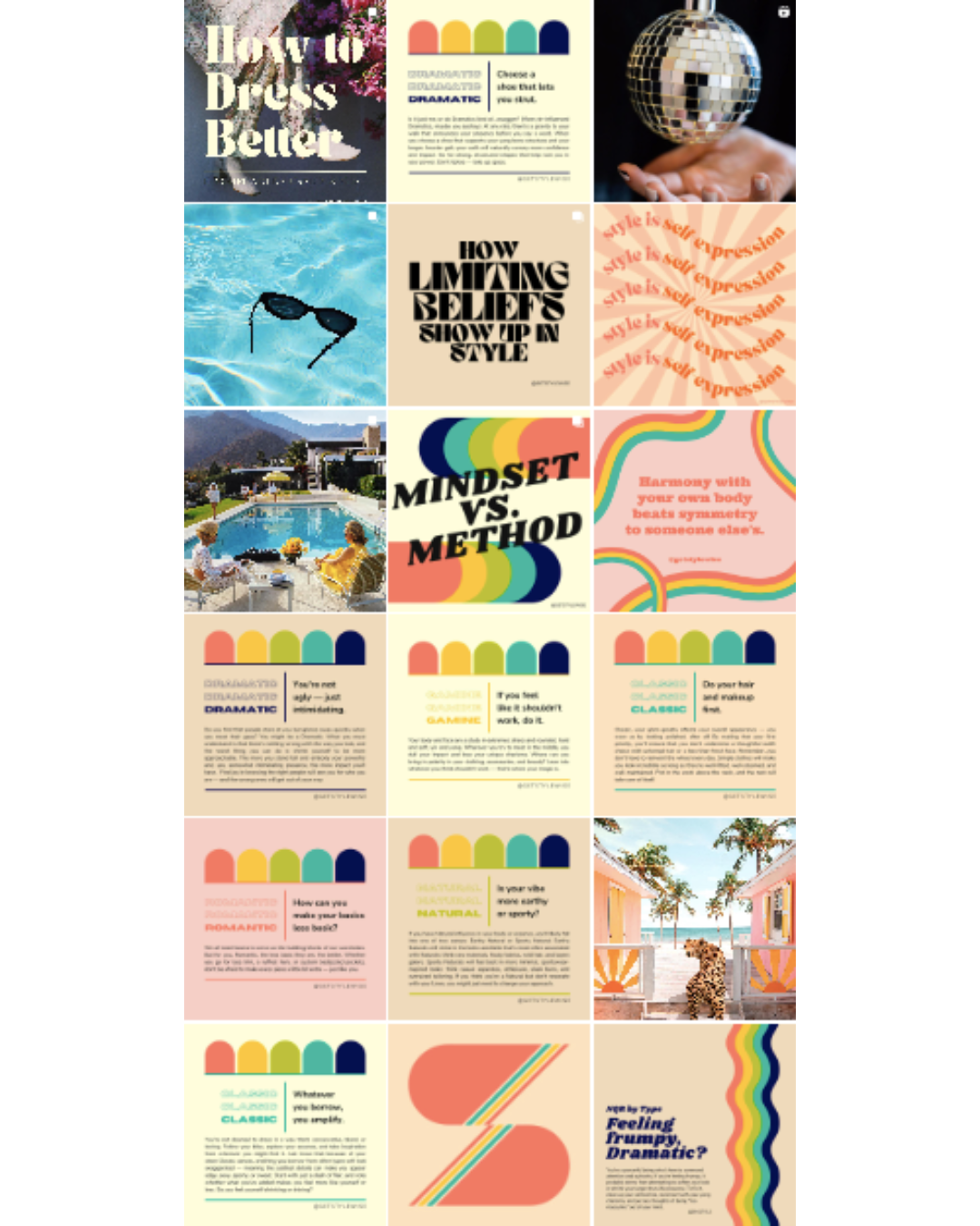 I created the marketing assets for my first business, StyleWise — a collection of educational resources on personal styling. The brand’s mission was to inspire confidence in women by helping them match their outsides to their insides. I built the world of the brand with a whimsical visual identity, an uplifting tone, and an original vocabulary that laid out the styling process in an inclusive, accessible way.